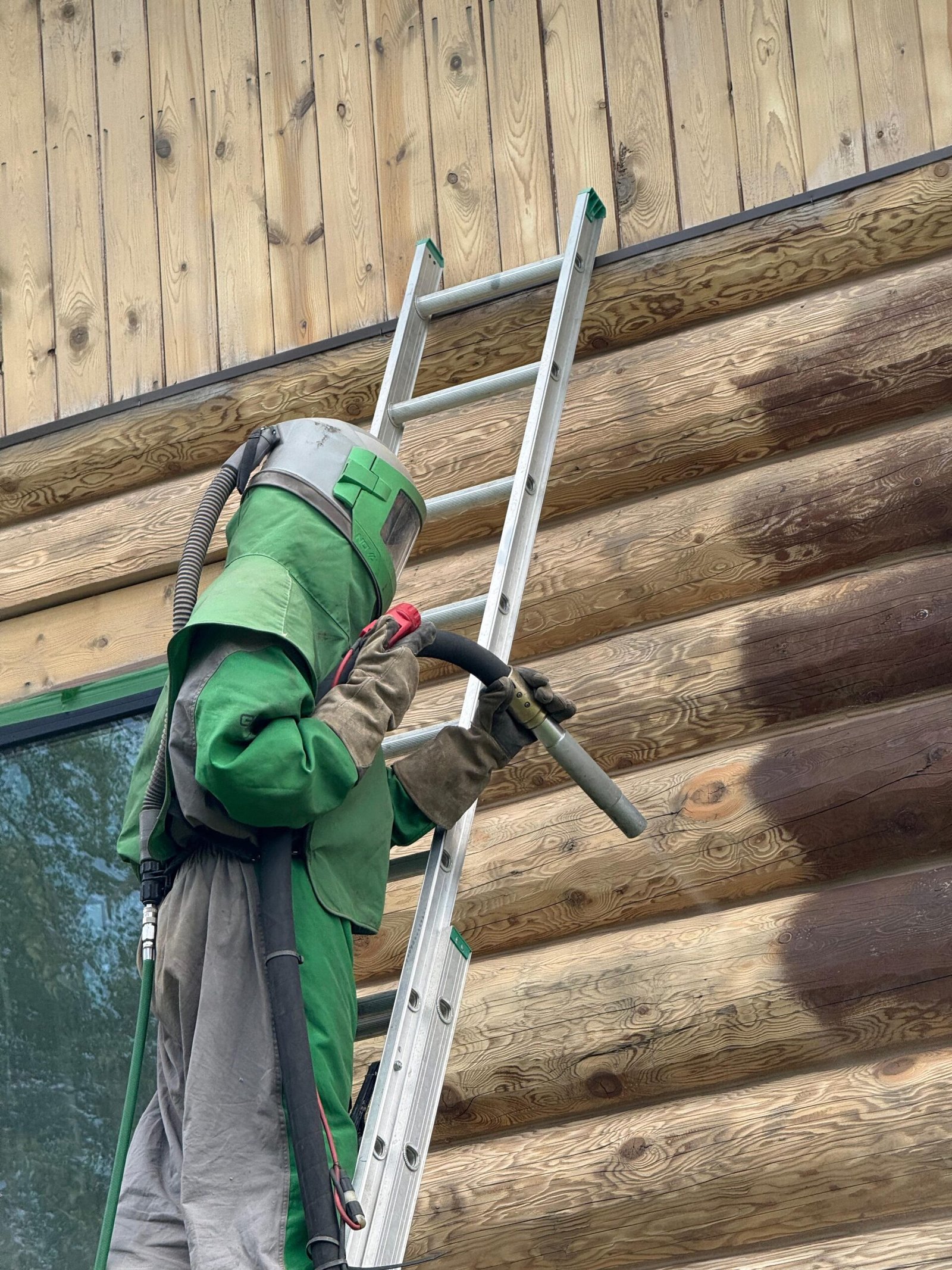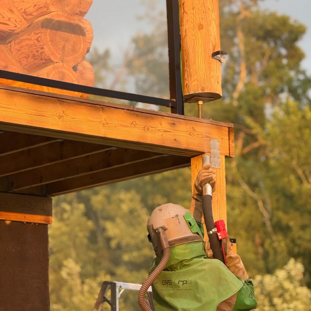 Proper surface preparation improves the appearance of the logs, enhances the performance and lifespan of new coating systems, and helps prevent premature coating failure. By restoring the wood to a sound condition, sandblasting plays a critical role in protecting your log home from long-term weather, moisture, and UV damage.
